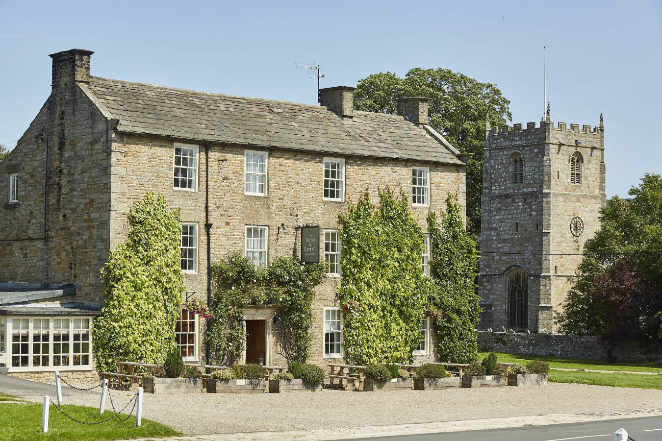 Llevamos generaciones recibiendo huéspedes en el Rose & Crown y, aunque el edificio sea del siglo XVIII, nuestro enfoque no está anclado en el tiempo. Entre en el bar, lleno de banderas de piedra, obras de arte rural y una crepitante chimenea, y encontrará a menudo a lugareños y visitantes intercambiando historias mientras toman una o dos pintas.