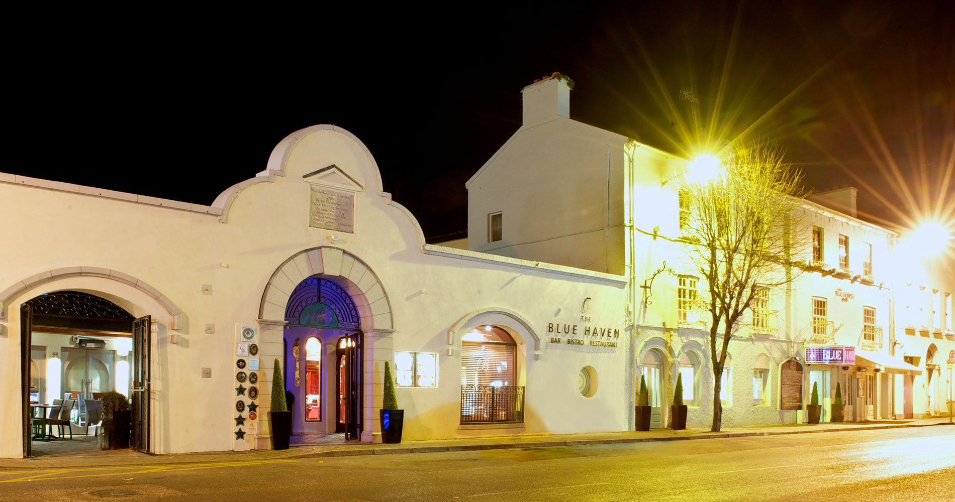 Kinsale, originalmente un puerto pesquero medieval, es una de las ciudades más pintorescas y populares de la costa suroeste de Irlanda, aclamada como su "capital gastronómica". El Blue Haven Hotel está construido en el emplazamiento de los antiguos mercados de pescado y carne de 1784, un legado que hemos honrado restaurando algunas de las aberturas, arcos y acabados murales originales del edificio. Admire los ecos de su pasado mientras disfruta de las comodidades de hoy cuando reserve con nosotros. Esperamos que se quede una temporada.