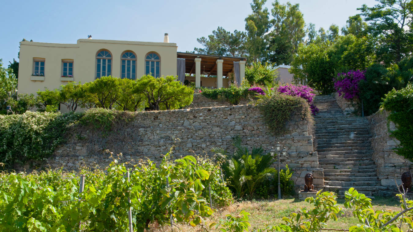 Nestled between the historic port of Karystos and the Venetian fortress Castello Rosso, Montofoli Wine Estate is an ancient landmark renowned for its hospitality. Over the years it has been transformed from its ruined state and restored to its former glory; in modern times we remain passionate about preserving its unique original personality. Our four historic villas are havens of comfort, with a relaxing outdoor pool available for guests in the summer months.